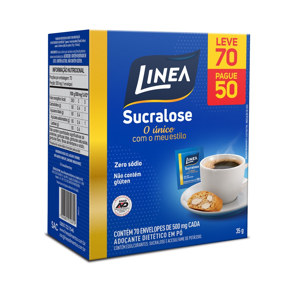 Linea Adoçante Em Pó Sucralose é um edulcorante derivado da cana-de-açúcar, 100% eliminado pelo organismo e pode ser consumido por toda a família. Para portadores de diabetes, não eleva o açúcar no sangue. Pode ser usado para uso culinário, pois mantém o seu poder de adoçante em altas temperaturas. Não contém glúten e possui zero calorias por sachê. Linea Sucralose vai bem com: suco, café, chá, iogurte, leite ou na bebida que você quiser. Lembre-se: meio sachê de Linea Adoçante Em Pó Sucralose equivale a 1 colher de chá de açúcar.