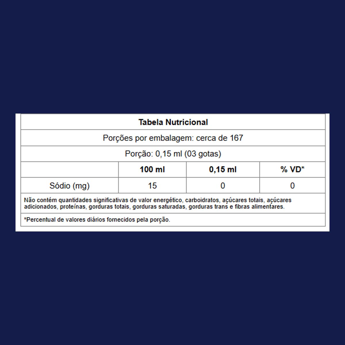 Equivalência: 3 gotas equivalem a 1 colher de chá de açúcar.