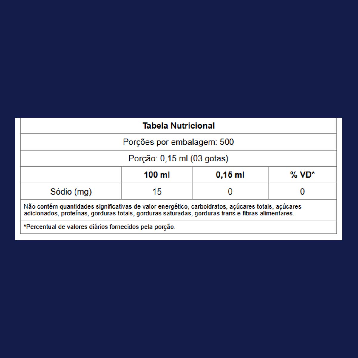 Equivalência: 3 gotas equivalem a 1 colher de chá de açúcar.
