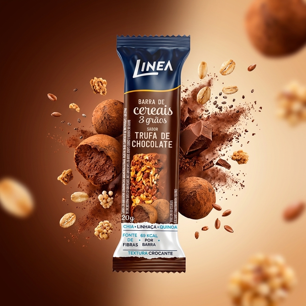 A Barra de Cereal Linea possui selo vegano e combina sabor indulgente com nutrição equilibrada. Com poucas calorias por barra, é elaborada com grãos integrais e ingredientes selecionados, oferecendo uma opção prática e saborosa para o dia a dia. Fonte de fibras, sem adição de açúcares e adoçada com maltitol e sorbitol (adoçantes derivados do milho), também apresenta baixo teor de sódio. Sua textura crocante e deliciosa é ideal para ajudar a segurar a fome até a próxima refeição, sem abrir mão do prazer.