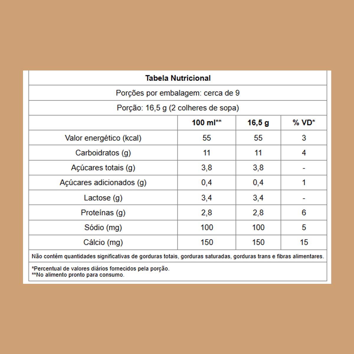Linea Cappuccino não possui glúten e é uma excelente fonte de cálcio, contribuindo para a ingestão diária deste mineral. Sem adição de açúcares, é adoçado com sucralose, o adoçante derivado da cana de açúcar que contribui para a redução de sódio e calorias. Não possui canela em sua composição, o que permite ao consumidor adiciona-lá se for do seu paladar. Proporciona um sabor envolvente, sendo uma escolha perfeita para aqueles que buscam uma opção deliciosa.
