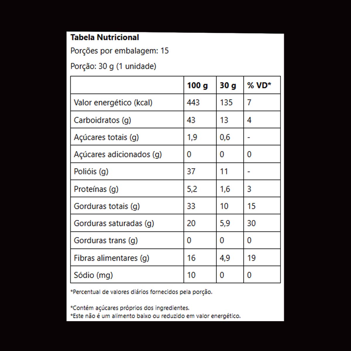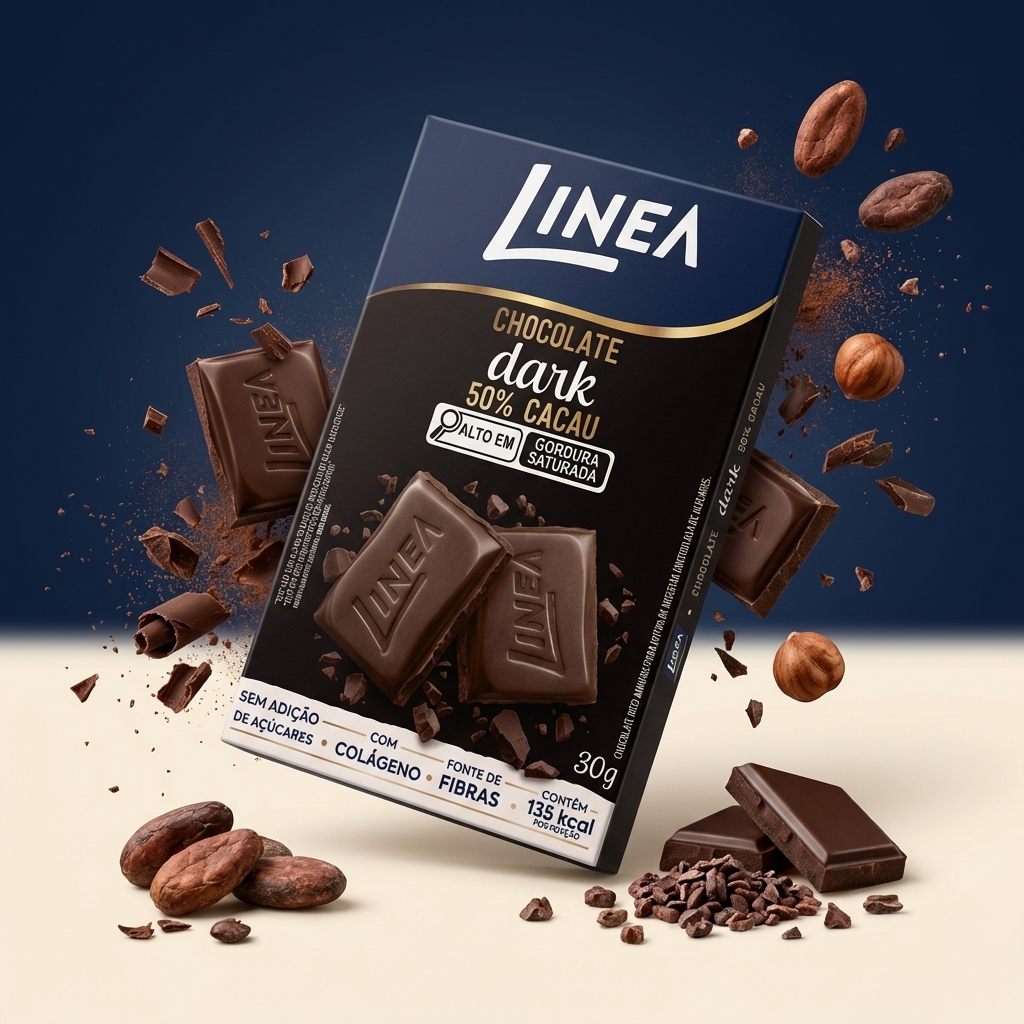 Linea Chocolate Sabor Darké sem adição de açúcares. Adoçado com sucralose e maltitol, contém 135kcal por porção. Com a manteiga de cacau como o 1º ingrediente, resulta em um chocolate macio e cremoso. Com colágeno, é fonte de fibras. Sabor indescritível que derrete na boca!