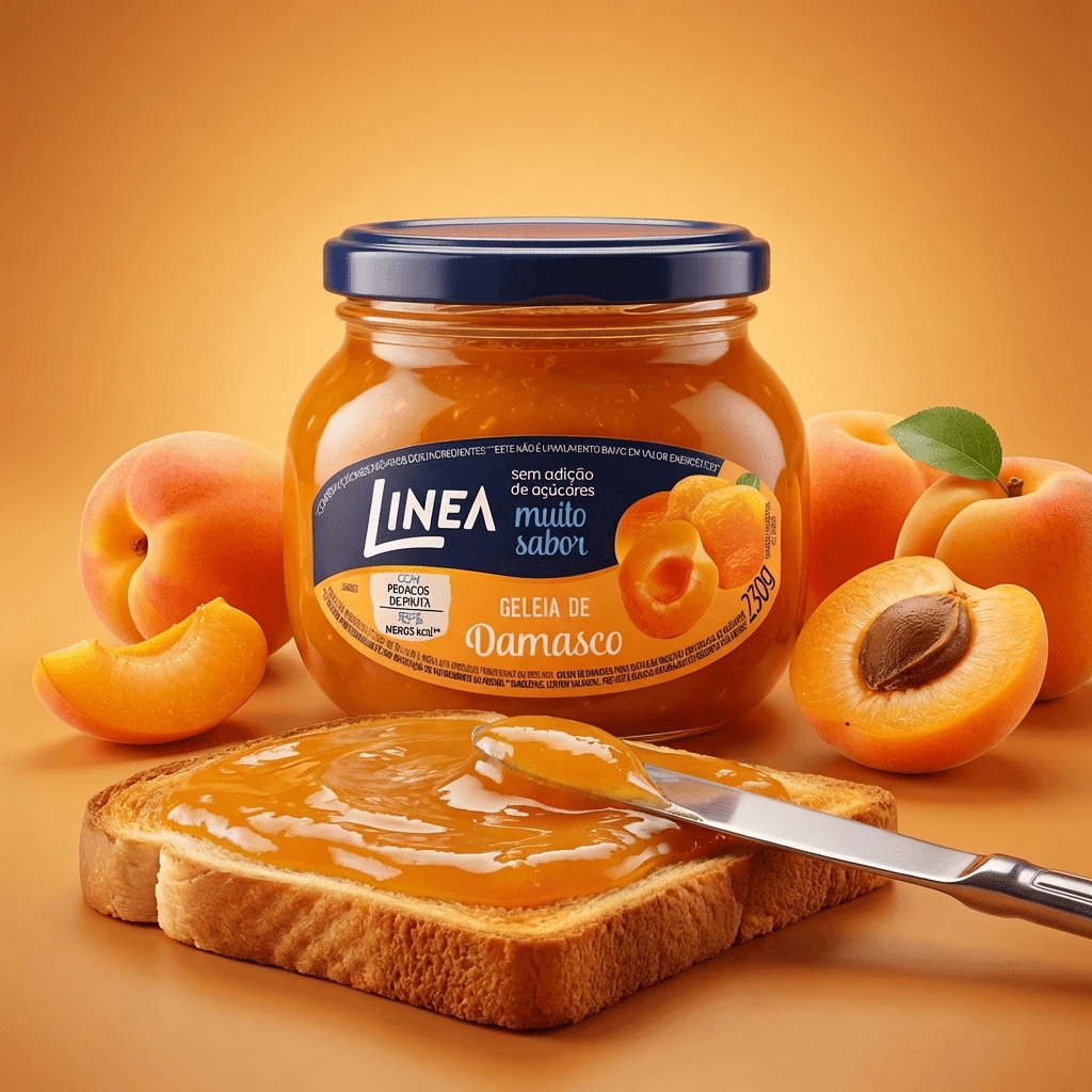 Geleia de Damasco Linea é cremosa, sem adição de açúcar, repleta de sabor e pedaços da fruta. Com o damasco como 1º ingrediente, essa delícia é 59% menos calórica que geleias com açúcar. Uma explosão de doçura saudável para transformar suas refeições.