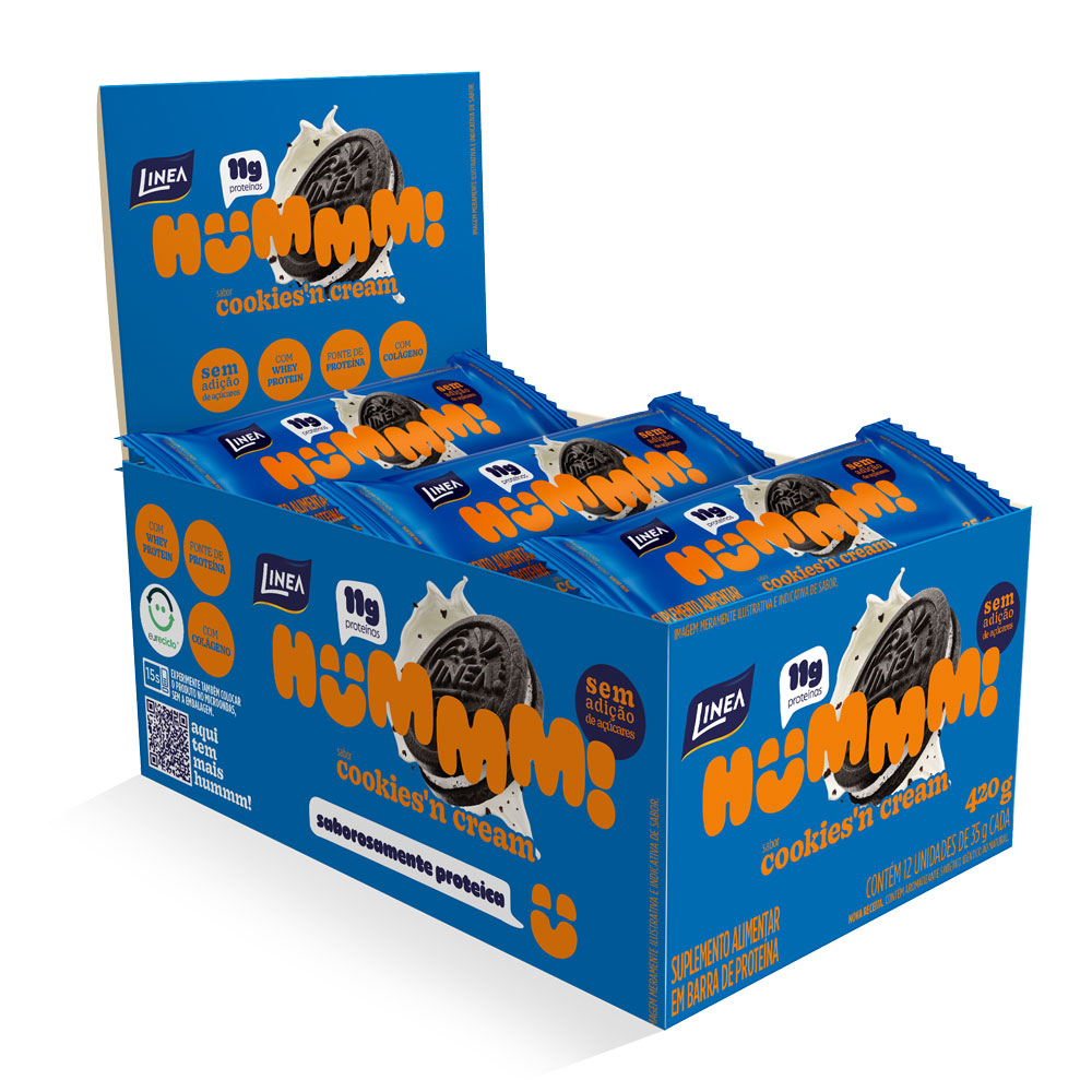 Hummm! Snack Proteico Sabor Cookies’n Cream - Caixa com 12 unidades de 35g