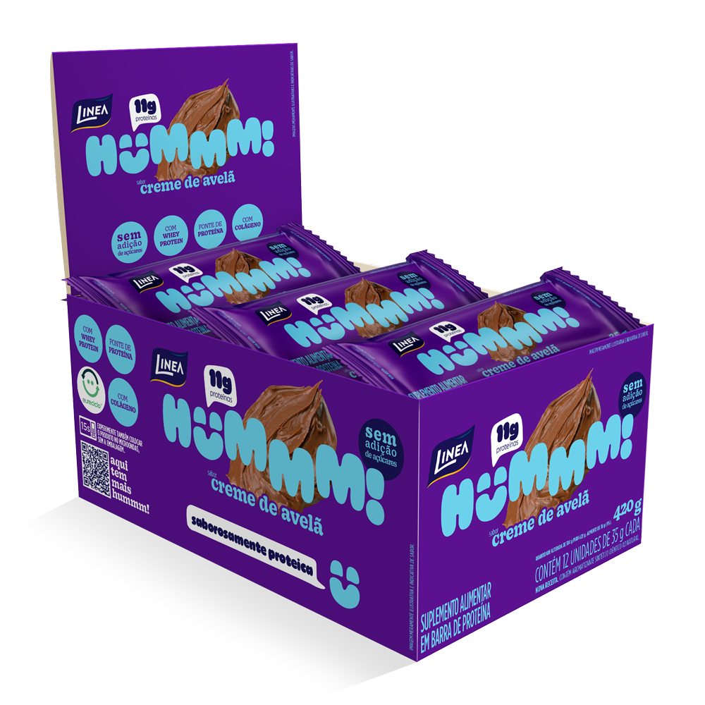 Hummm! Snack Proteico Sabor Creme de Avelã - Caixa com 12 unidades de 35g